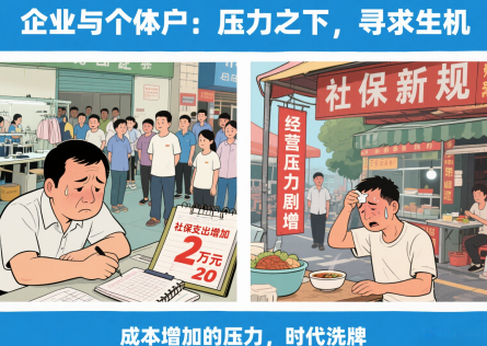 但从长远看,员工们也明白社保是一份保障。缴纳养老保险,退休后能有稳定收入;医疗保险能在生病时减轻医疗负担。就像老陈,退休后靠着每月的养老金,生活过得安稳,他常对年轻人说:“别只看眼前,老了就知道社保的好了 。” 企业与个体户:压力之下,寻求生机