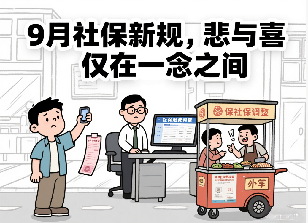 9月社保新规|18张漫画解读企业与个人的悲与喜(原创漫画)发表时间:2025-08-19 14:21 社保缴纳强制执行,有人哭穷有人偷乐这账该怎么算?