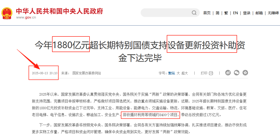 1880亿“两新”补助下达,和你我有啥关系?发表时间:2025-08-19 14:23 8月13日“两新”1880亿补助下达完毕,和我们有关系吗? 最近,一条消息在财经圈炸开了锅:2025年8月13日,1880亿元的“两新”投资补助资金全部下达完毕!这可不是一笔小数目,它被用在了15大领域,助力约8400个项目,还带动了超1万亿元的总投资 。可能有人会问,这听起来好像很厉害,但和我们普通人到底有啥关系呢?别着急,下面就给大家唠唠。 什么是“两新”政策,到底新在哪?